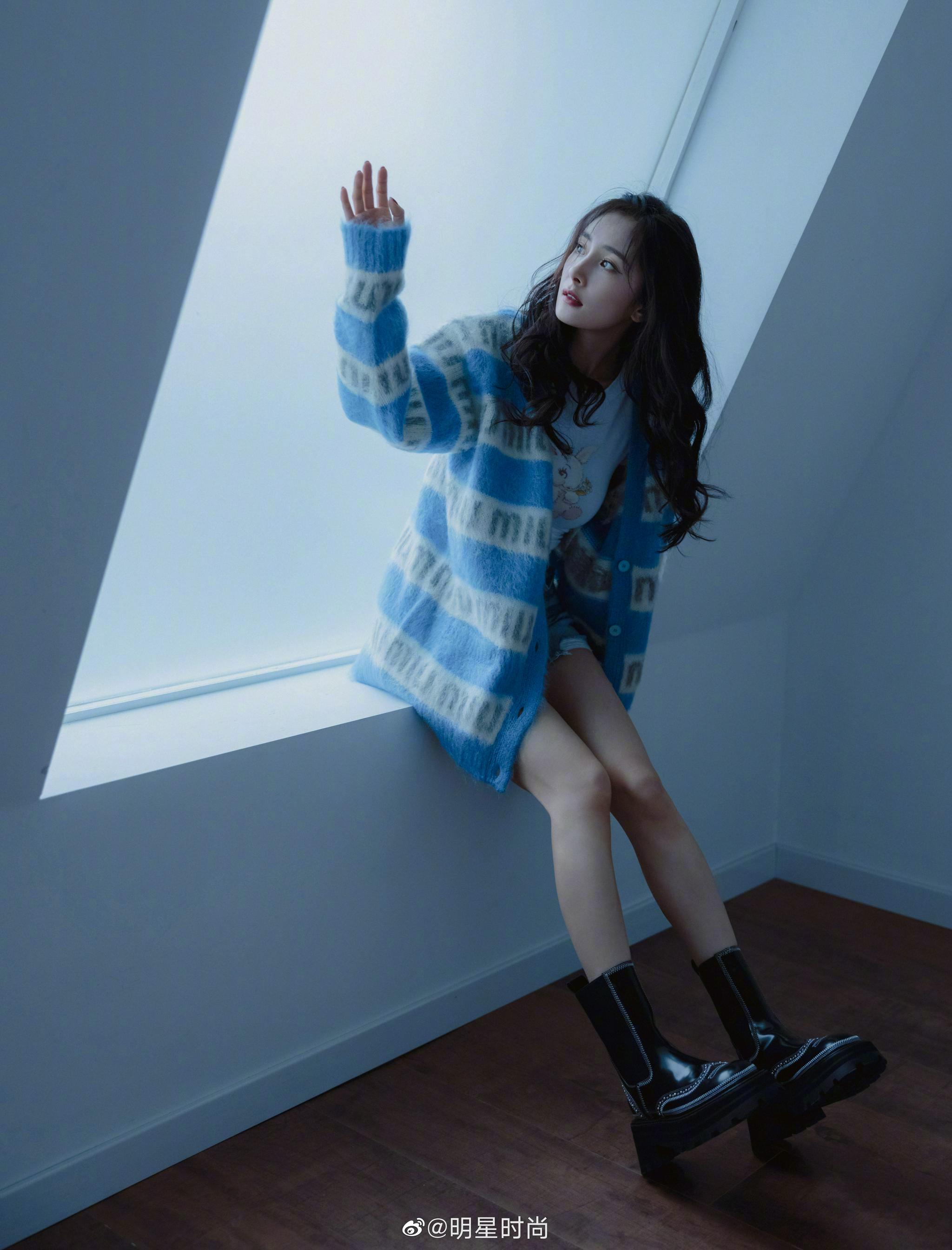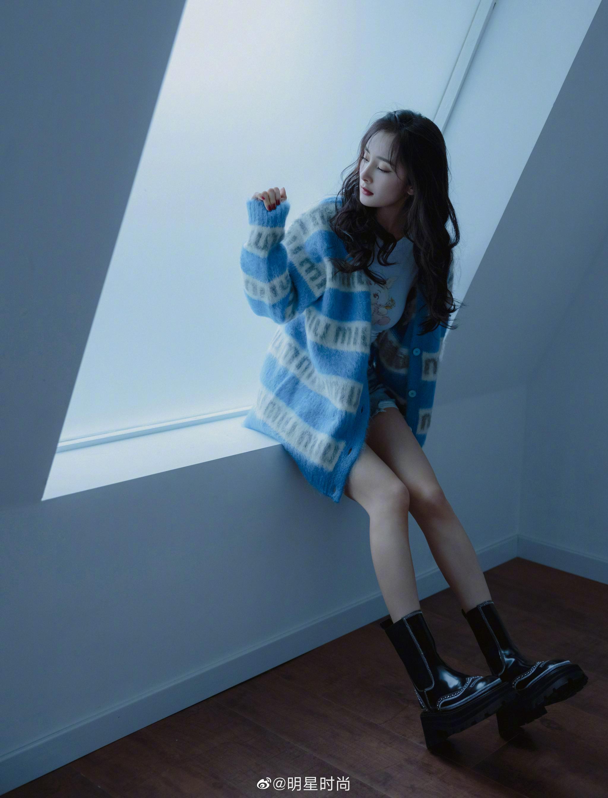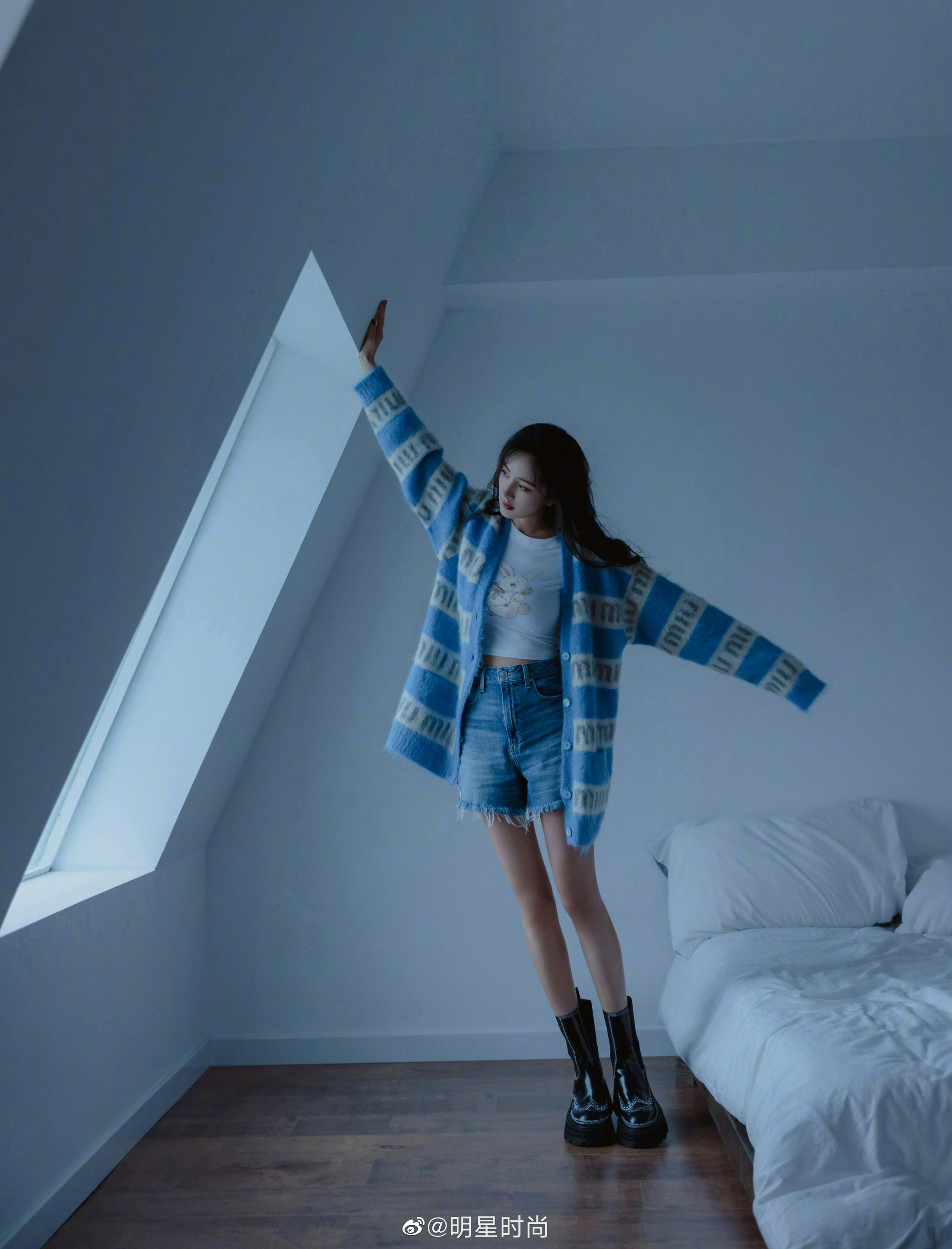 #杨幂直播状态##杨幂天蓝色针织开衫#杨幂今日份的造型,天蓝色针织开衫简约俏皮,大幂幂这状态也是绝了!