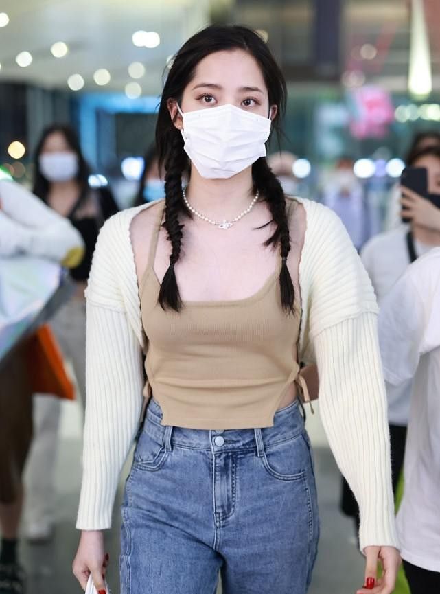 这样才能呈现出更好的时尚效果,不得不说欧阳娜娜终于成熟一回,短背心配薄针织衫,知性有型又大方。