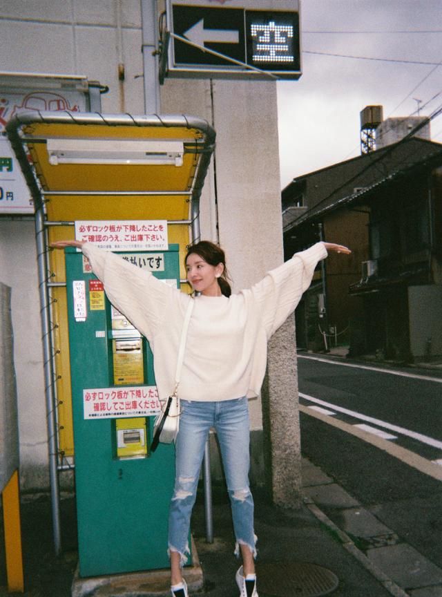 在搭配针织衫的时候要合理的使用不同的松紧度来呈现出扬长避短的搭配效果,如果你的上半身骨架比较大,但是腿型非常纤细匀称的话,可以尝试用宽松的蝙蝠针织衫来搭配修身款式的牛仔裤,用上松下紧的搭配方式来凸显腿型上的优势。