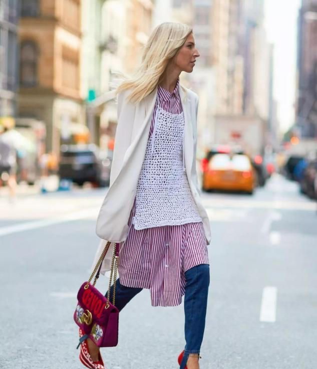 网状的针织背心其实实用度并不高,只是用在搭配方面。但是网状的针织背心它也是真的比较高级时髦一些,搭配衬衫的话立马就可以变得精致起来。只是这种网格状的针织背心小编比较建议白色淡蓝这种浅色系的款式,它不挑肤色的同时给可以和衬衫有很好的呼应,不会破坏你整体搭配的协调性。
