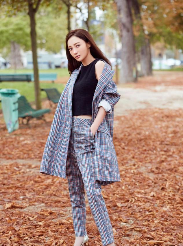 姚笛也对针织背心情有独钟,选择的工装背心几乎不挑身材,任何体型的妹子都可以Hold住,同时还可以有修饰肩部线条的作用。而且她还是作为内搭,搭配西装外套遮肉显瘦。同时小露腰线的穿搭方式还可以让她的穿搭更显质感。