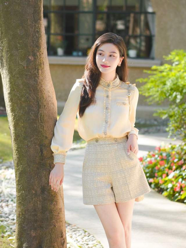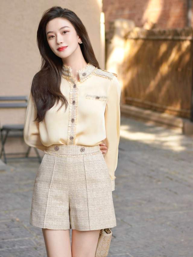 下半身可以用收腰的短裤进行搭配,把衬衫塞进裤子里头,秀出细腰长腿真吸睛,脚上踩着一双高跟鞋,女人味十足。再搭配上和裙子同时系列的小包包,哇塞,简直是美呆了。