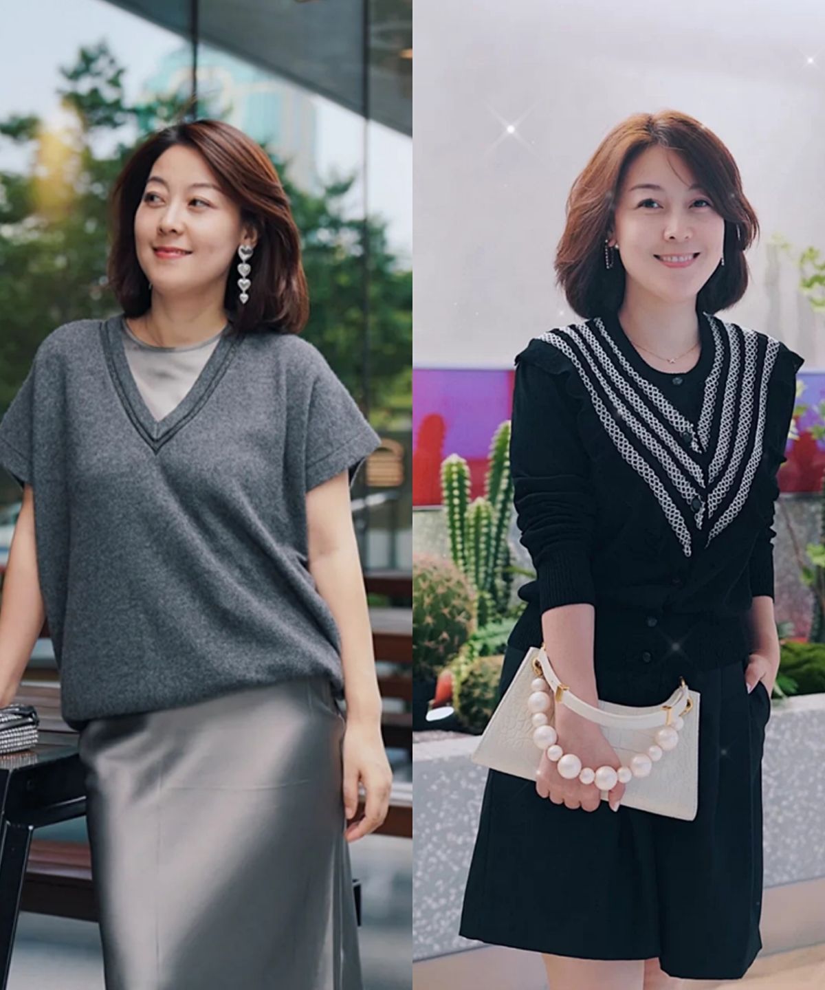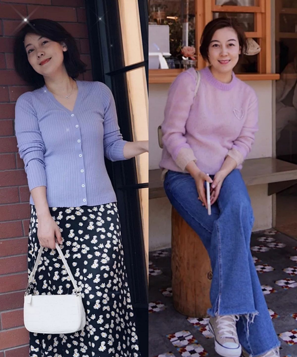 牛仔裤虽然集低调、实用与经典于一身,不挑人又方便,但女人到了40、50岁这一阶段后,比起减龄低调,如何兼顾简约与优雅,以及营造出熟龄女人味更重要。从这一点上看,针织衫、半身裙更能满足奔五女人的穿搭需要。