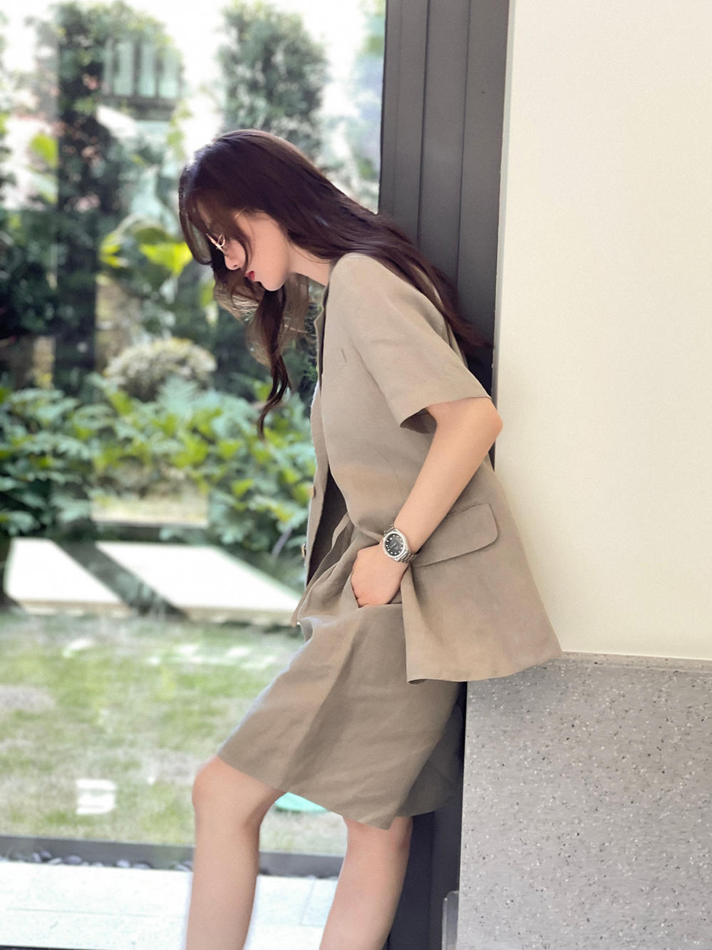 正统的西装都是长款西装裤,但在炎热的夏天,短裤也是可取的,它会秀出你笔直纤细的双腿,让你的好身材得以展现,宽松的裤腿对腿部的包容性很强,它会完全遮挡你的大腿曲线,就算你腿有点粗也不用担心,蝴蝶结腰带的勾勒更能打造出清爽利落的气质。