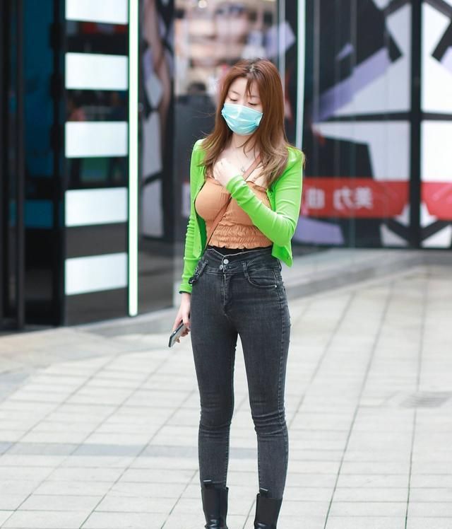 亮绿色针织衫配卡其色吊带衫内搭,这样的搭配完美的突出了小姐姐身材的美和迷人的魅力,可以说活泼的亮绿色和内敛的卡其色搭配相得益彰,美丽又耐看。下身搭配就灰色的修身牛仔裤,灰色穿出了活力的美感,它没有纯黑那样显得比较呆板,同时又不失显瘦的效果。