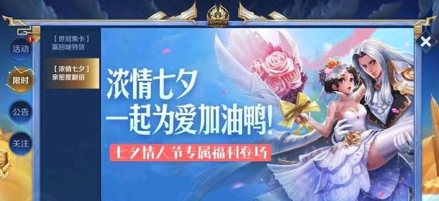 七夕是一个非常特殊的节日,它是传说中牛郎与织女每年会面的好日子,所以七夕也被称为是我们国人的农历情人节。每逢佳节,天美都会推出很多福利活动和相关皮肤活动回馈玩家,今年七夕当然也不例外,本次版本更新后,各种情侣主题活动都会开启预热,像情侣皮肤免费体验,开黑亲密度翻倍等,有CP的玩家又可以大秀恩爱了。