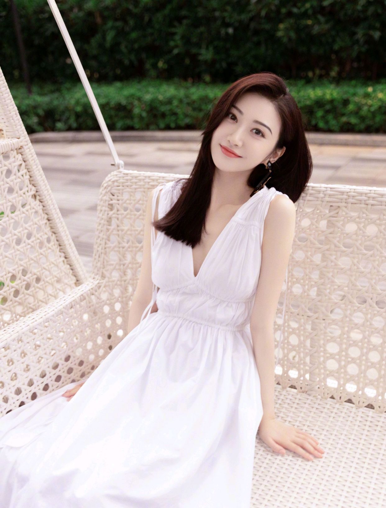 景甜的五官明艳大气,一袭颜色寡淡的小白裙,可以与她的颜值相互衬托,能够穿出明媚不俗的look。这次她选择了深V领无袖的连衣裙,展现出她拔尖的身材,简洁的搭配,却美得很张扬。