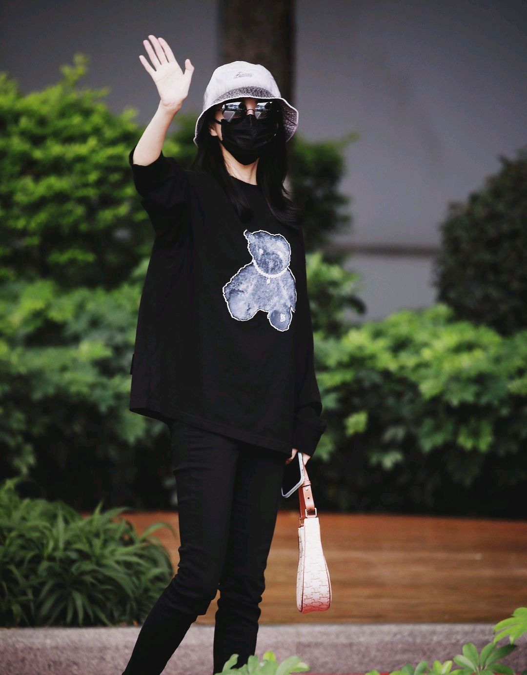 同色系是最容易穿出高级感的穿法,而这次景甜一身黑色系的look,利用浅色系的包帽配饰提亮造型,上身显白显瘦还不失街头感。