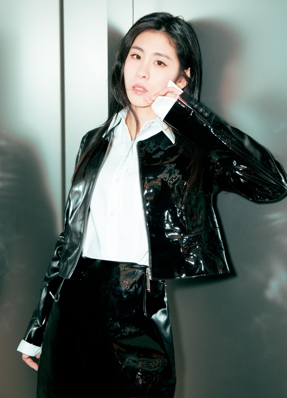 皮衣加上皮革半身裙的穿搭更是别具一格,这种皮革套装的造型可以省去很多搭配时间,一次性满足我们的搭配需求,而且张碧晨在里面搭配了白色的衬衫连衣裙,这样的叠穿搭配还是蛮独特的。