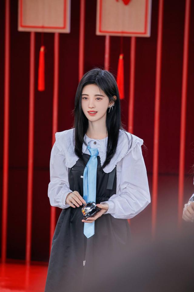 对比以往的其他造型,鞠婧祎似乎总能找到属于自己的独特风格,这款红色针织开衫采取短款设计,更加凸显腰部纤细。