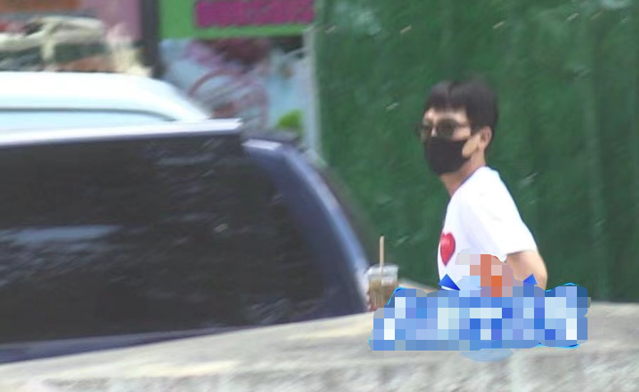 随后欧豪又去商场买了一杯饮料,喝了一半后走向车边。这时的欧豪已经脱下背带裤和针织帽,又换了一套造型。