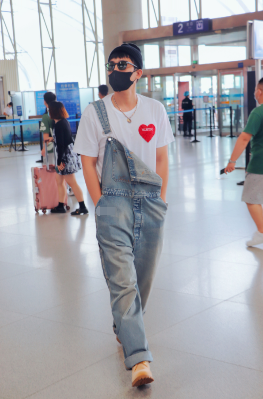 近日,有媒体拍到青年演员欧豪现身北京机场。图片中,欧豪穿着一条背带牛仔裤,只系了一边带子,搭配白色爱心T恤,脚蹬一双黄色马丁靴,酷帅中不失活泼可爱,头上还戴了一个针织帽,果然潮人都是不怕热的。