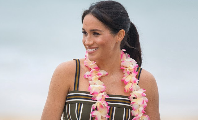 蓝色系对于英国王室而言,绝对是一种比较特别的颜色,显肤白的蓝色几乎在所有人的身上都出现过,自然梅根也不例外。