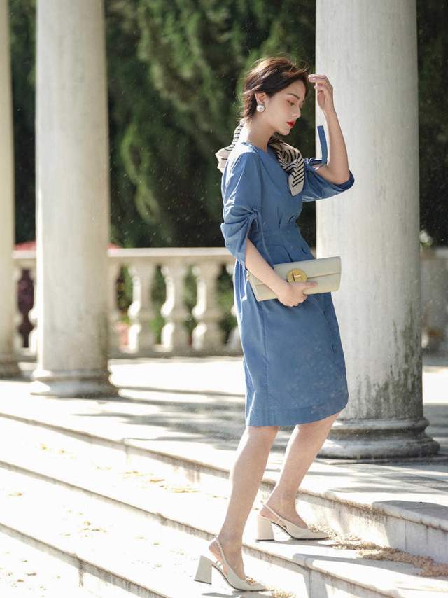 看起来有点类似于毛衣的针织衫设计也很好,既能秀出身材,又能露出锁骨和天鹅颈,紧身也能够提高手臂的一个线条,半身裙又给人一种很典雅的感觉,再搭配一双平底鞋就更完美。一双高跟鞋给人更加成熟。