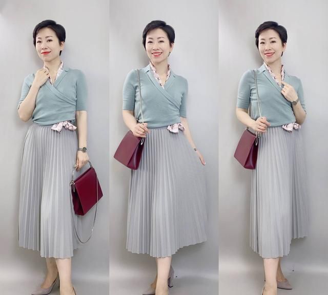 特别钟爱半袖针织衫,因为它衬得手臂修长,打造出的优雅气质是上班通勤的不二之选。