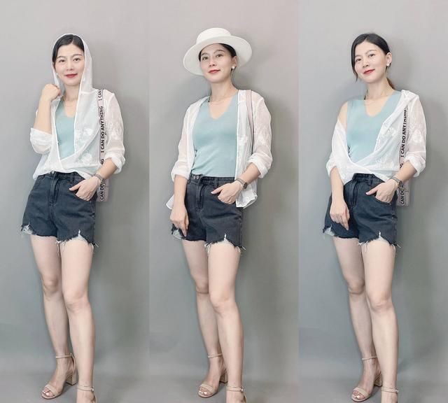 如果是胳膊比较粗,或者不好意思露胳膊的姑娘,也可以把背心作为内搭,搭配一些小衬衫短袖外套,防晒服等等,好看又舒服,还能增加夏天穿搭的层次感。