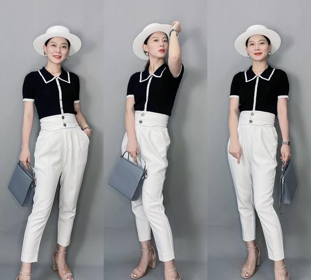 这种Polo款式和更能展示身材的曲线度针织衫结合,给人一种别致的中性风感觉,没那么纯粹,反倒更有魅力。