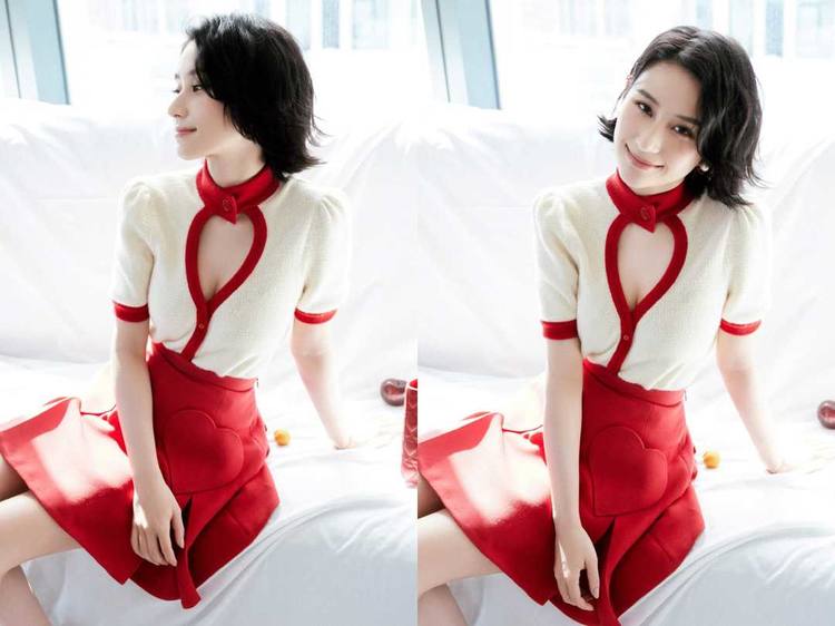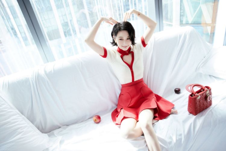 在通身的色彩搭配上用基础的白色搭配上亮眼的红色,在整体上呈现出张弛有度的搭配效果,何超莲的长相非常精致,肤色也非常白皙,因此在驾驭这种大红色的时候显得手到擒来,一点难度都没有,上半身的针织衫以大面积的白色作为主色,在领口和袖口的位置用红色来描边,既可以呼应下半身的半身裙,又可以呈现出搭配上的丰富感和层次感。