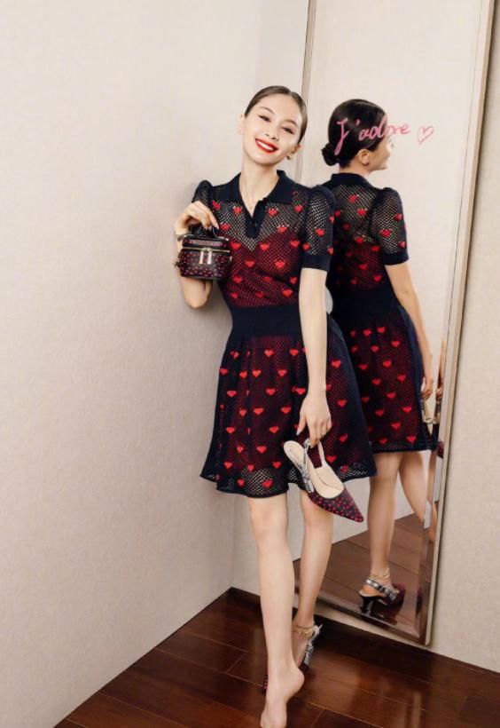 黑色的渔网连衣裙上面结合爱心印花,这种红色和黑色相互中和,看起来亮点十足,而且这种撞色系的搭配会显得十分的耀眼,穿在身上以后显得气场全开。小个子也可以结合高跟鞋的搭配修饰身材,显得腿更长更细,轻轻松松打造好身材。