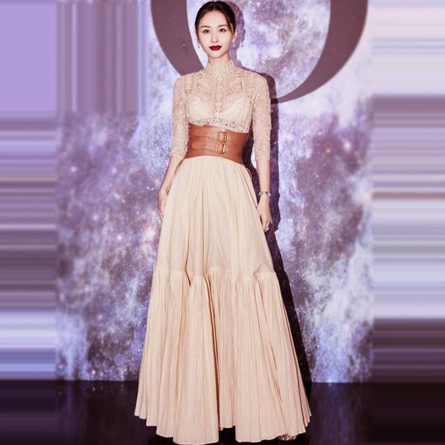 与此同时,我们在穿连衣裙的时候还可以去结合一些收腰的设计,凸显你的腰线,达到显高显瘦的目的。王子文选择这种长款连衣裙时就结合了棕色的腰带,宽宽的腰带可以让她的腰线被勾勒出来,显得身材比例很好,虽然连衣裙比较长,可是依然不会觉得累赘。
