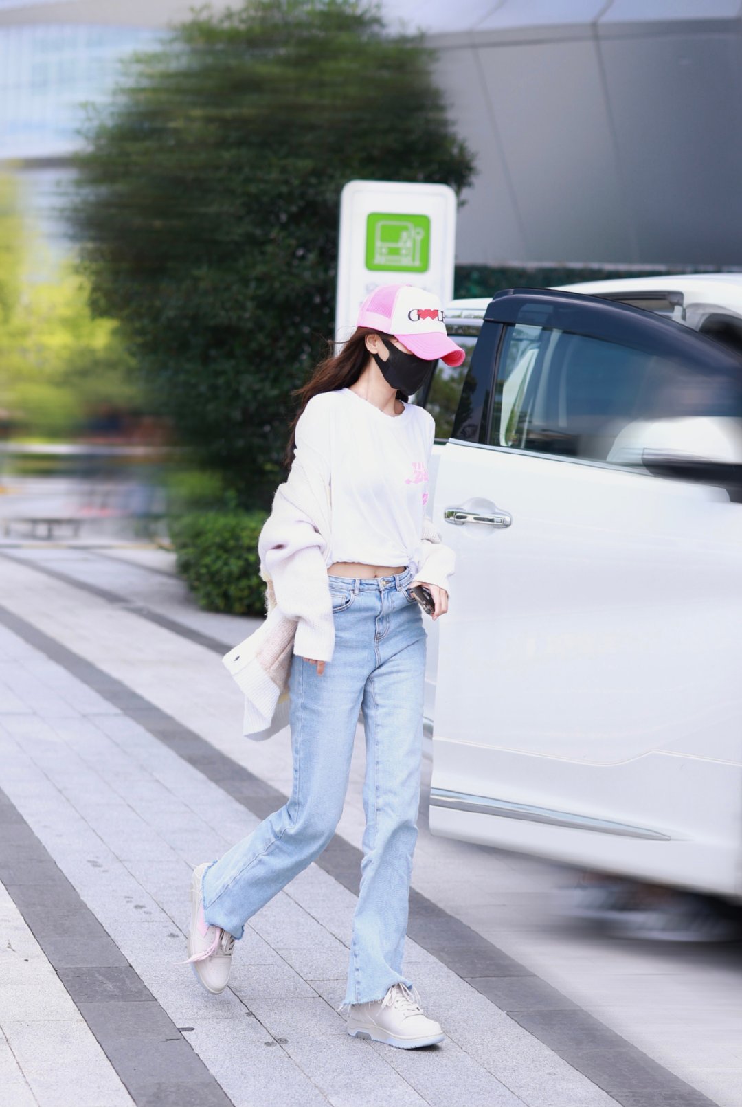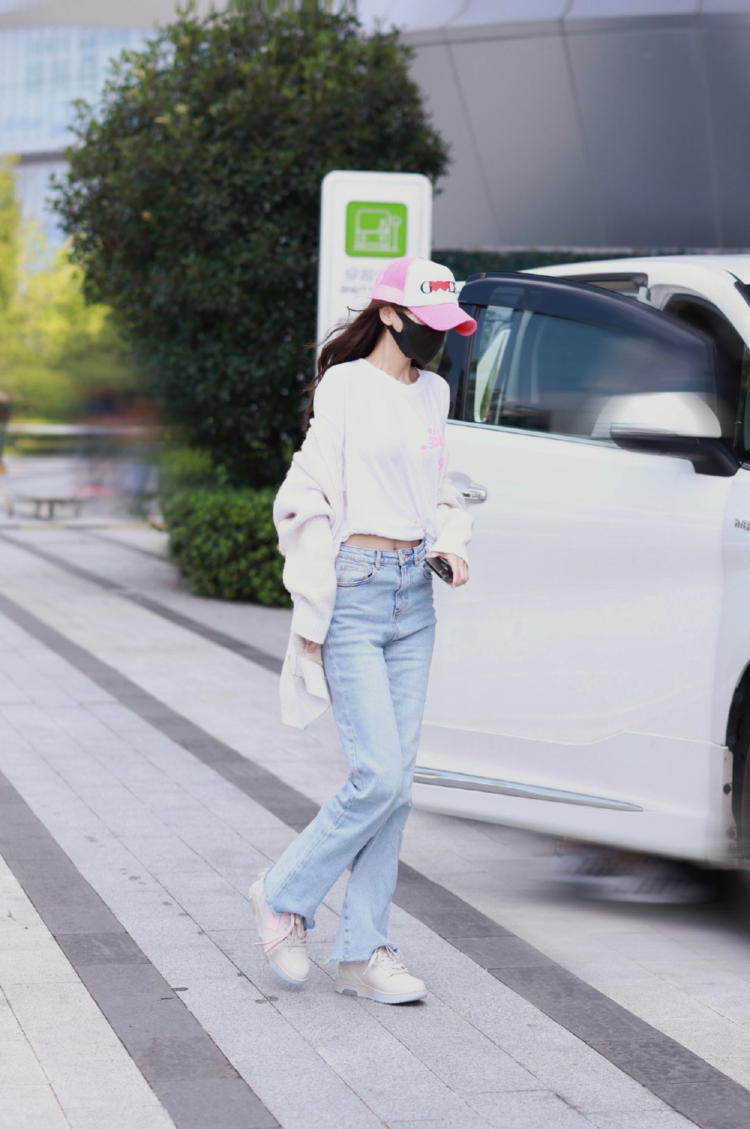 Angelababy针织开衫内搭领口破坏设计印花T恤,尽显少女心