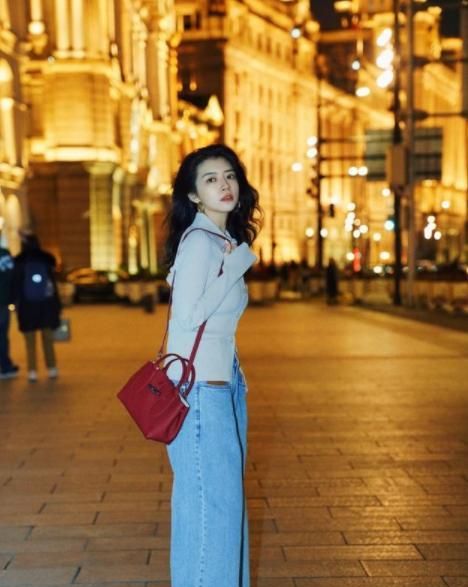 在夜晚街道灯光的照耀下,身穿牛仔阔腿裤的三木显得格外耀眼。宽松的版型搭配高腰的设计,将手插进口袋里,整个人显得慵懒随性。