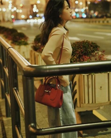 天气渐渐回暖,颜色的选择也变多了起来。浅色系的服饰虽然可以给人温柔优雅的感觉,但会缺少青春活力的气息。融入一些亮眼的颜色可以给人不一样的感觉,图中的三木搭配了一个红色的单肩包,造型立马就变得青春活力了起来,造型瞬间多了亮点之处。