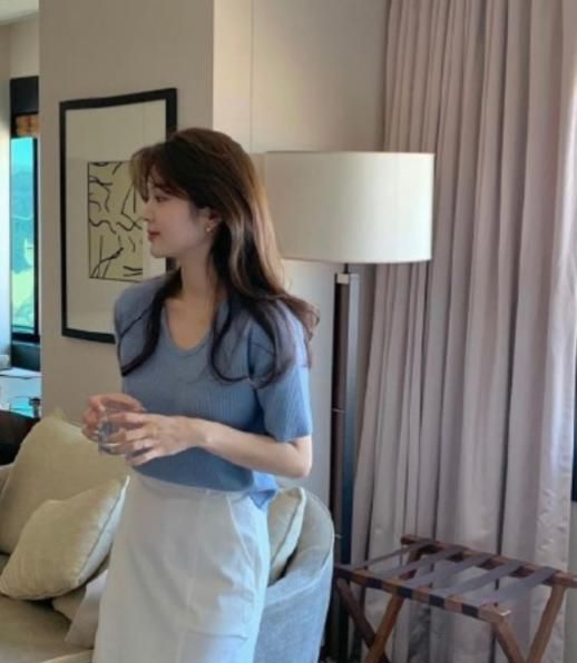 与之相反,如果是高腰短袖针织衫,它的个性会更加活泼,和明快轻盈的短袖组合起来刚好。
