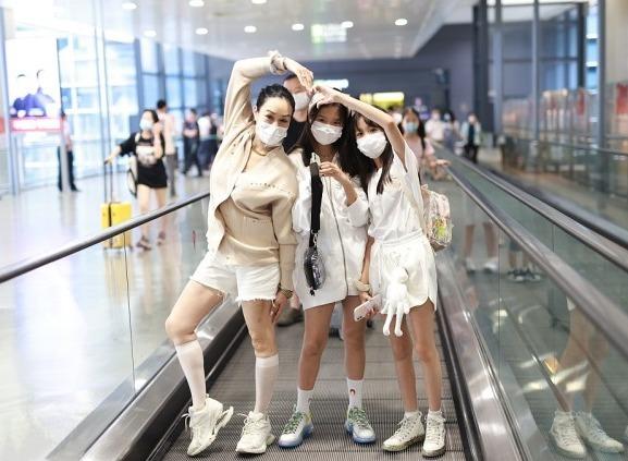 钟丽缇与女儿走机场,针织开衫配白色短裤超洋气,母女美如姐妹花,钟丽缇的下半身结合白色中筒袜和小白鞋,更能够提升她的魅力,让整个搭配的风格得到改变,而且白色中筒袜的风格比较清新,和白色的短裤结合起来,层次感分明。