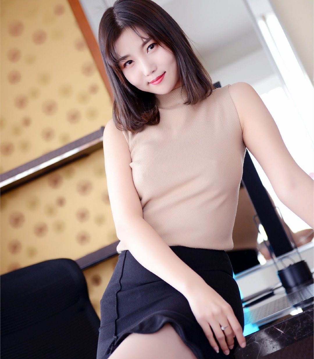 下搭一条黑色荷叶短裙,同样简约又有型的包臀设计,衬托出精致的身材,荷叶边的裙摆甜美减龄,同时能很好地修饰腿型,搭配一双黑色高跟鞋,无论是日常穿搭还是通勤都是很不错的选择。
