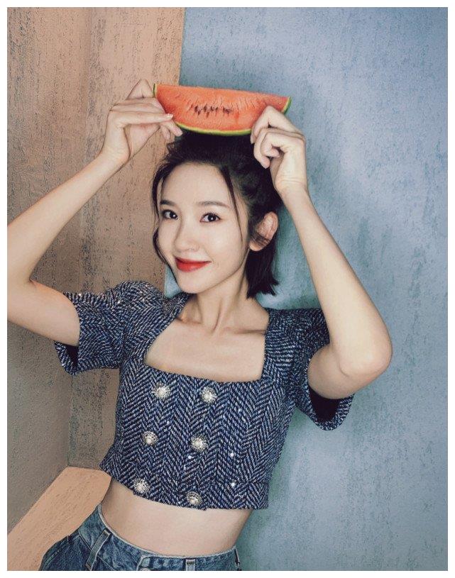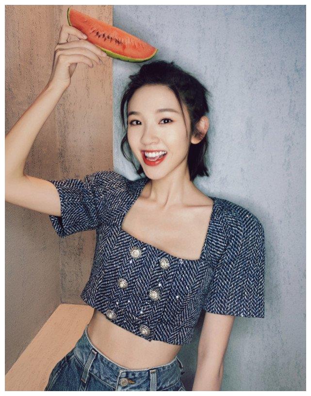 > 唐艺昕方领针织夹克,精致又有型