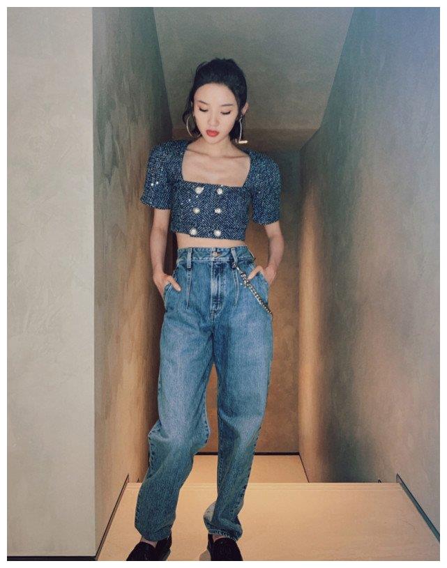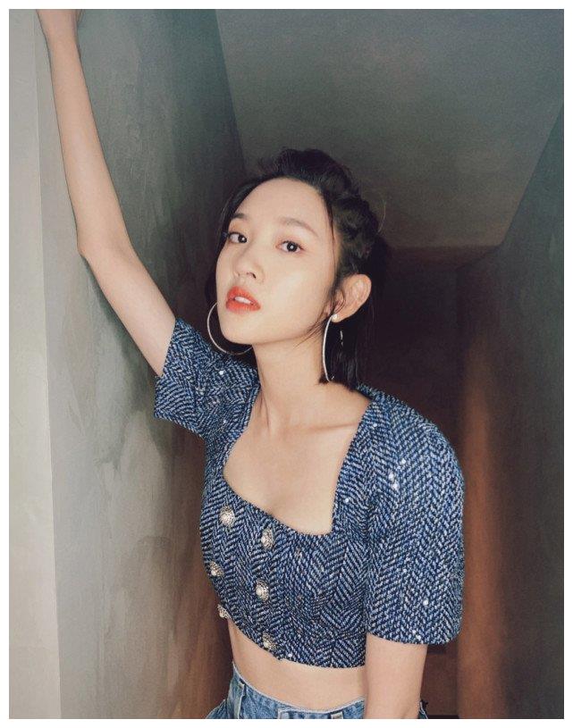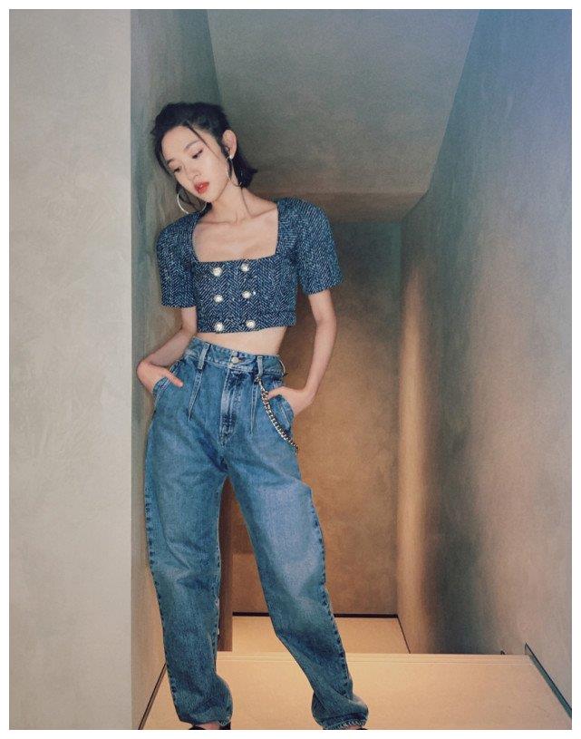 唐艺昕方领针织夹克,精致又有型