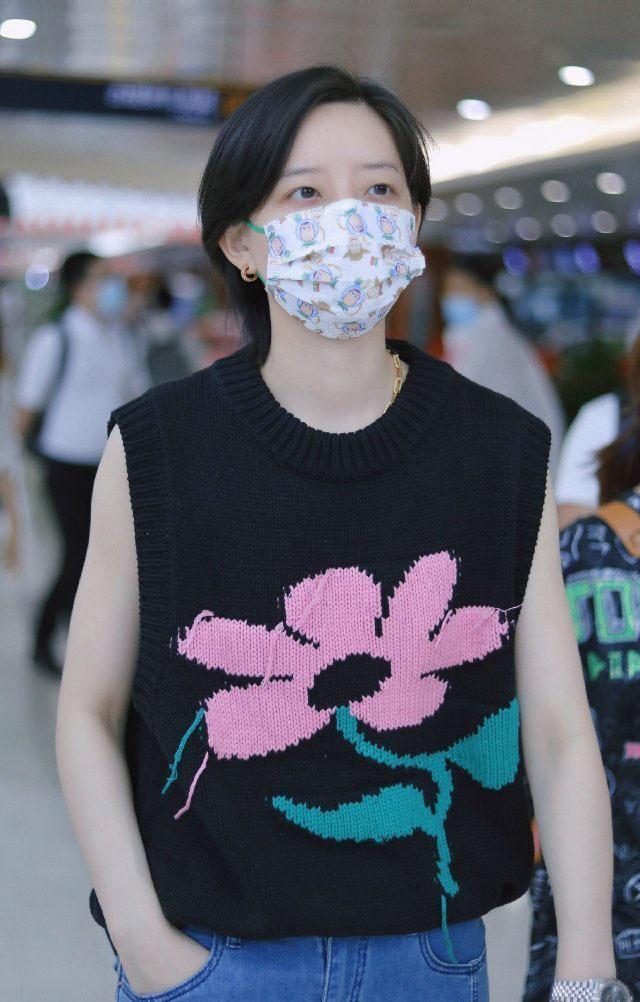 这次李斯丹妮现身机场的私服搭配风格还真是帅气复古,却又完全不失去高级范儿,很符合她的个人风格!她上身选择的是一件黑色印花的毛针织背心,这件背心的版型十分宽松,上身满满的休闲范儿凸显出来,再加上毛线针织的材质看起来超级有复古高级的feel呢。但背心胸前的印花,看起来却也是增添了不少清新俏皮的感觉,少女感十足呢!