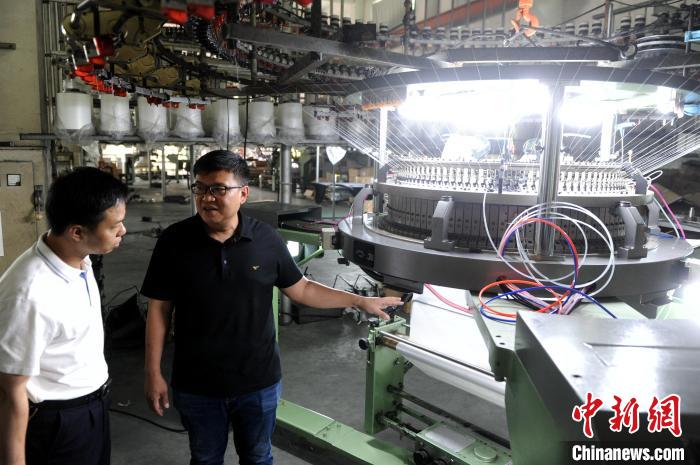陈胜裕(右)向参访者介绍企业生产的针织大圆机产品相关情况。 张金川 摄据陈胜裕介绍,国峰精机的客户有很大一批是从建厂开始就购买国峰精机设备的,至今,有些客户已经从最初那个拥有十几台设备的小企业,逐步发展成了规模化上市公司,且这些企业同国峰精机的合作粘性越来越高。