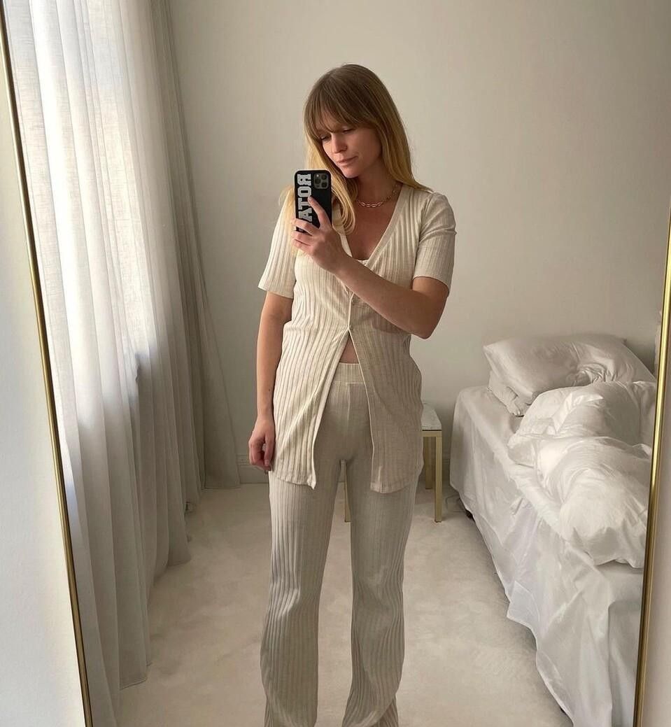 看完了短袖针织衫的款式选择,那么短袖针织衫应该如何去搭配呢?首先,最不会出错的搭配就是短袖针织衫套装。