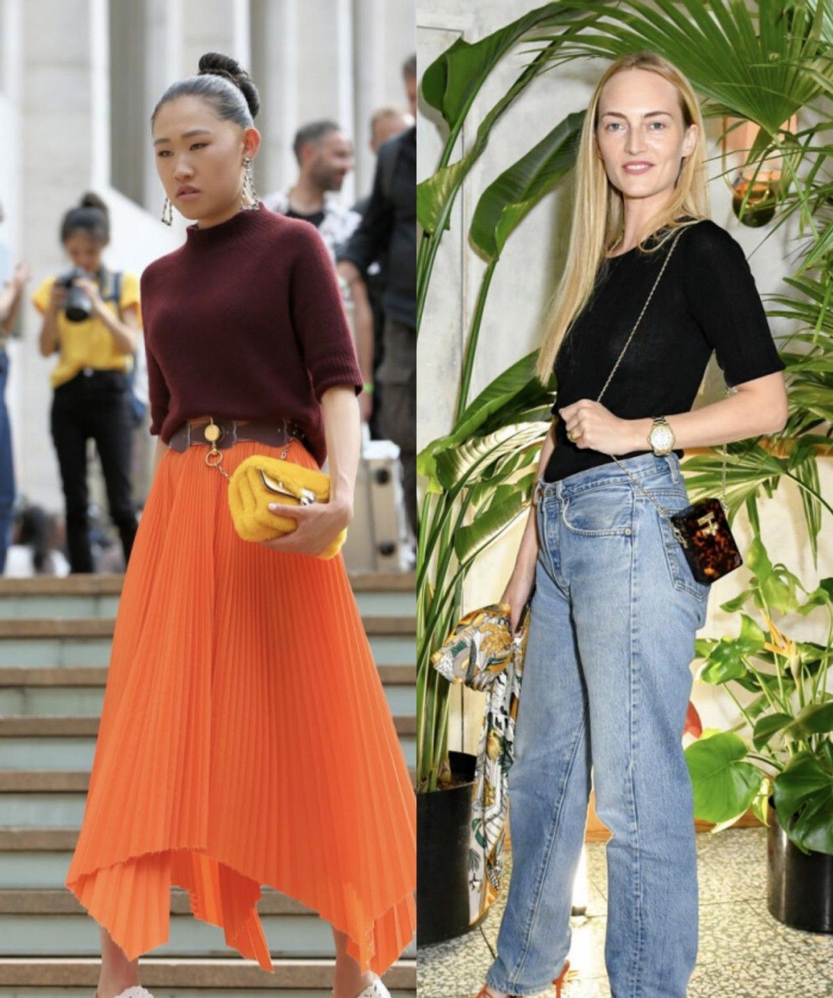 如果和半裙搭配的话,想要打造出温柔气质,建议用半身长裙来与之搭配,身材好的小姐姐可以选择包臀裙或者直筒裙,想要更有飘逸感,可以选择A字裙。