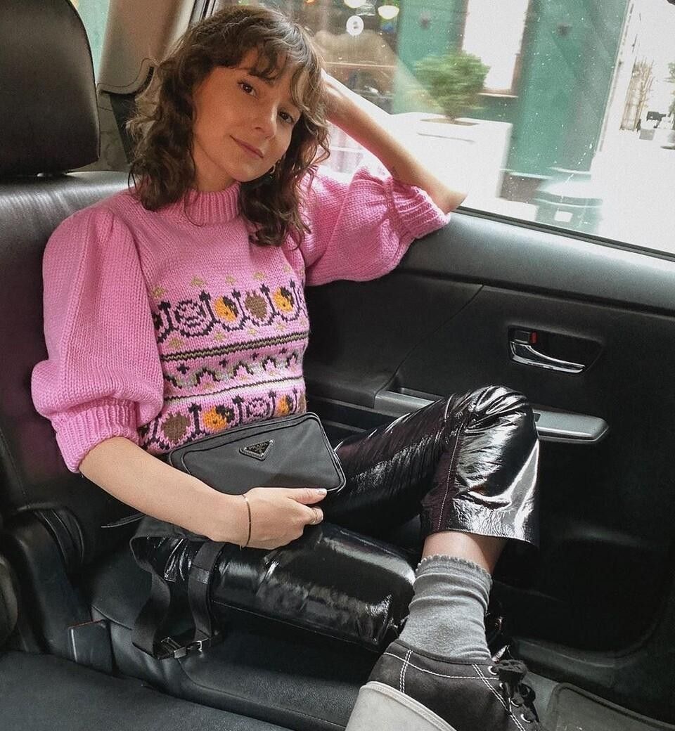 针织衫本身就不符合夏天里的穿搭,所以更不建议大家在针织衫上面加入多余的印花图案,选择纯色的短袖针织衫会让造型更加简约。
