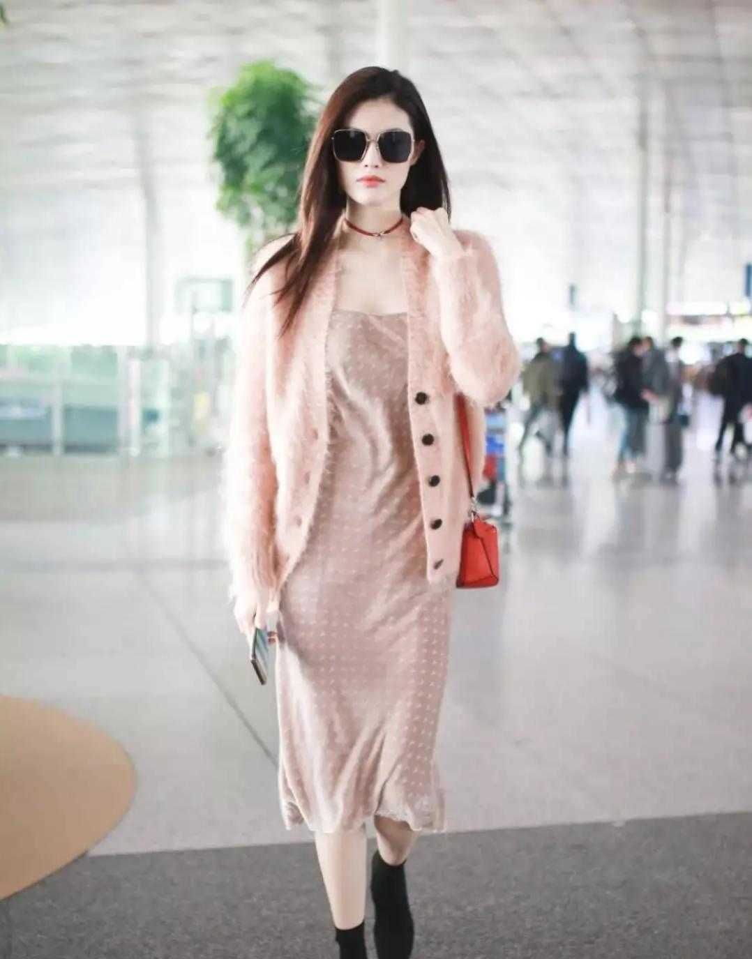 粉色针织开衫搭配同色系的连衣裙看上去温柔似水,少女感十足,成熟女性在选择粉色搭配的时候需要注意,色彩饱和度不能太高,太高的色彩饱和度会呈现出一种过于装嫩的感觉,除了用降低色彩饱和度的方式来减少驾驭难度之外,也可以用大面积的基础色搭配小面积的粉色来呈现出局部装点的效果。