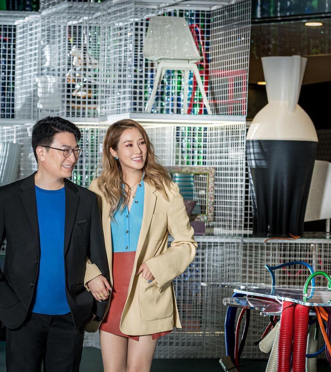 徐子淇在下半身搭配了一款开叉的皮质半身裙,短款的半身裙可以将腿型上的纤细感和修长感完美的凸显出来,同时开叉的设计元素又可以避免呈现出过于包裹的感觉,因为皮质的面料虽然比较显气质,但是在夏季穿搭中,透气性不够,用开叉的设计元素可以用非常简单的设计方式减少包裹闷热的感觉。
