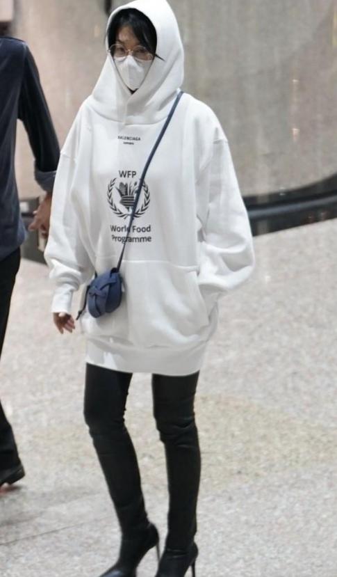 如果不喜欢色彩太过艳丽的玫红色搭配,我们也可以将玫红单品替换成百搭系列的白色、或黑色卫衣,长度及臀的宽松卫衣刚好可以遮挡臀部的多肉缺点,在瘦腿显身材的效果展现下,所带来的气质和风度完全不亚于西装的干练、和针织的高级时尚风。